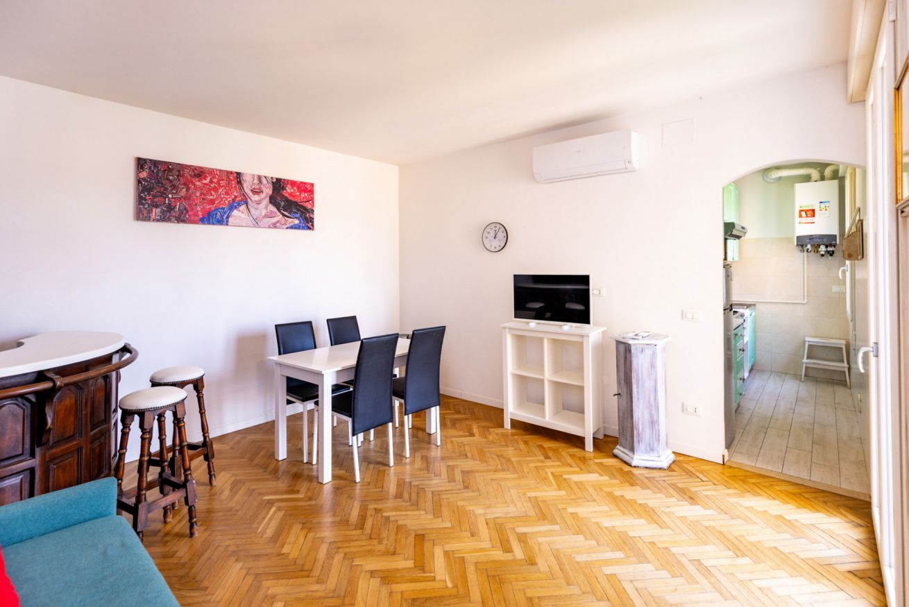 Appartamento al 3° piano completamente arredato con ingresso, soggiorno con cucinino e poggiolo, disimpegno, camera doppia, camera matrimoniale con cabina armadio, bagno finestrato con doccia. Dalle camere si accede ad un ampia terrazza.